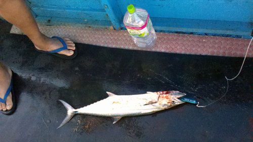 回程拖釣由恆春人開胡攪了一隻小土魠(算是此次唯一的一隻好魚,只是太小了)
