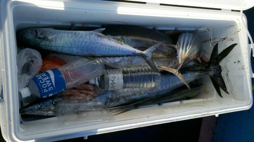 一到今日目的地,攪了一陣子連吃都沒吃,發現大軍們都已浮上水面,船長建議開始拖釣,攪攪浮水的巨物